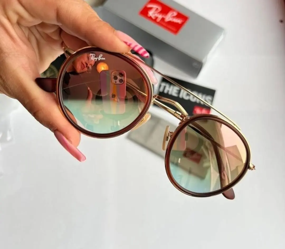 Ray-Ban Round Double Bridge Gold Rosa Espejado.